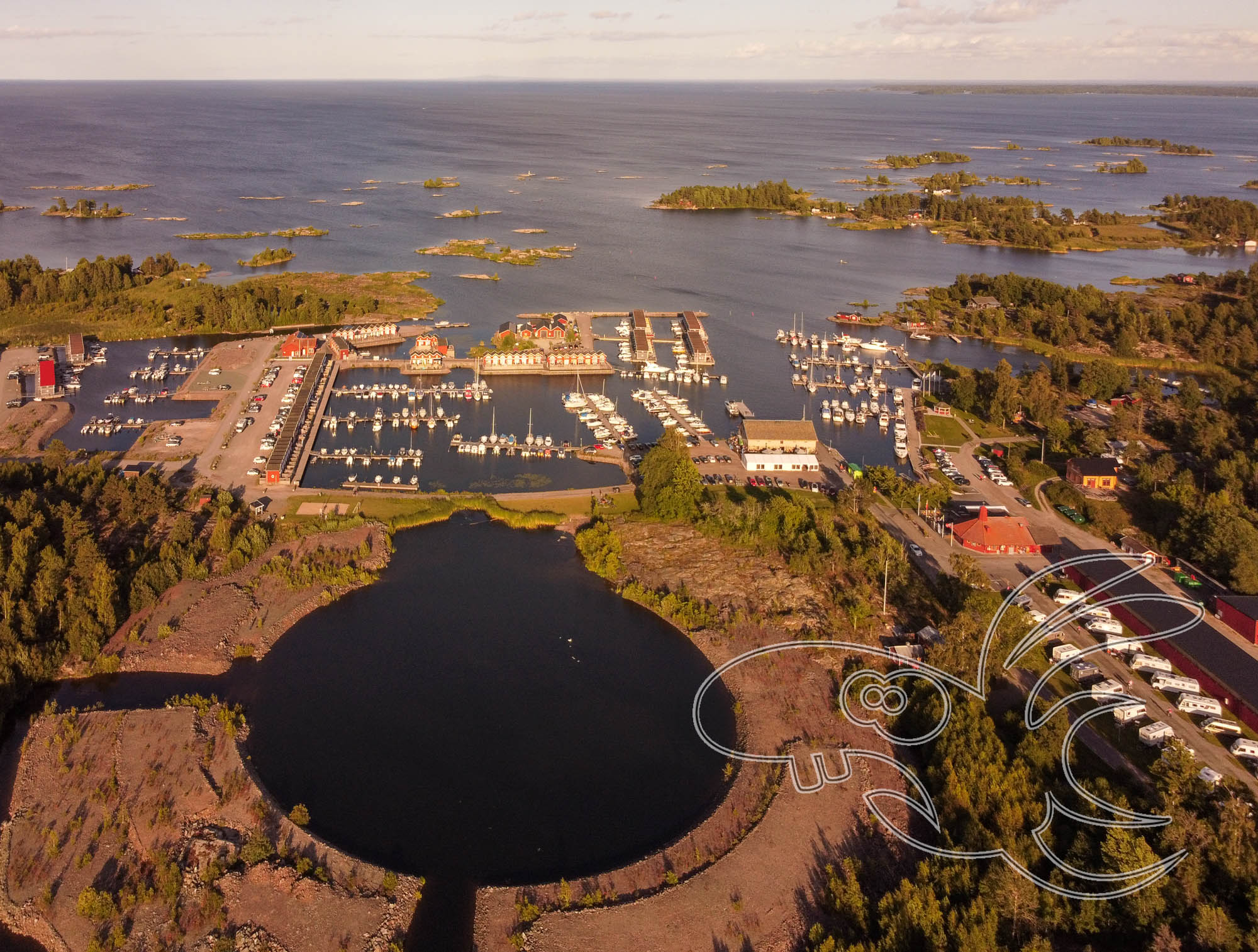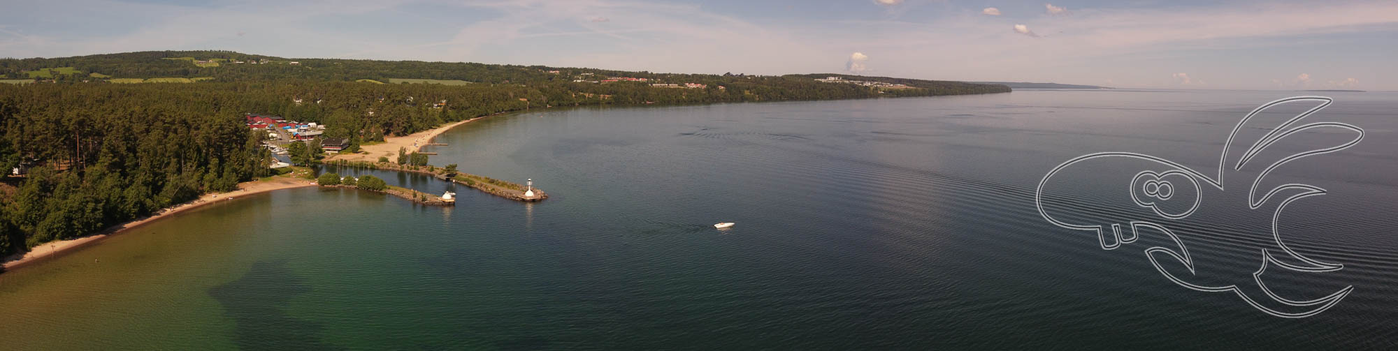 Erst das vorgelagerte "Sunanna Hamn" liegt direkt am "Vänern". Offensichtlich hatte man hier mal Großes vor. Eine künstlich angelegte Marina mit vielen kleinen Bootshäusern und Hütten wird von einem Restaurant mit Konzert- und Veranstaltungsmöglichkeiten ergänzt.