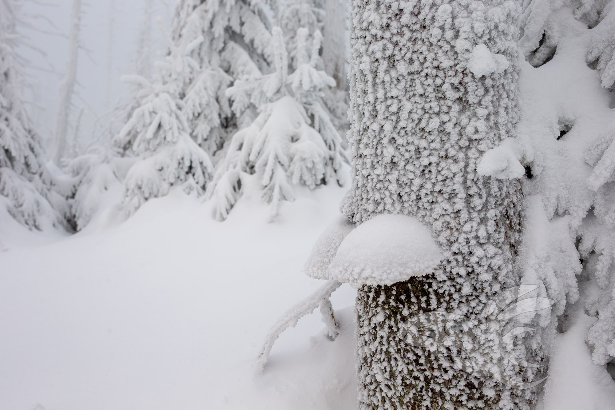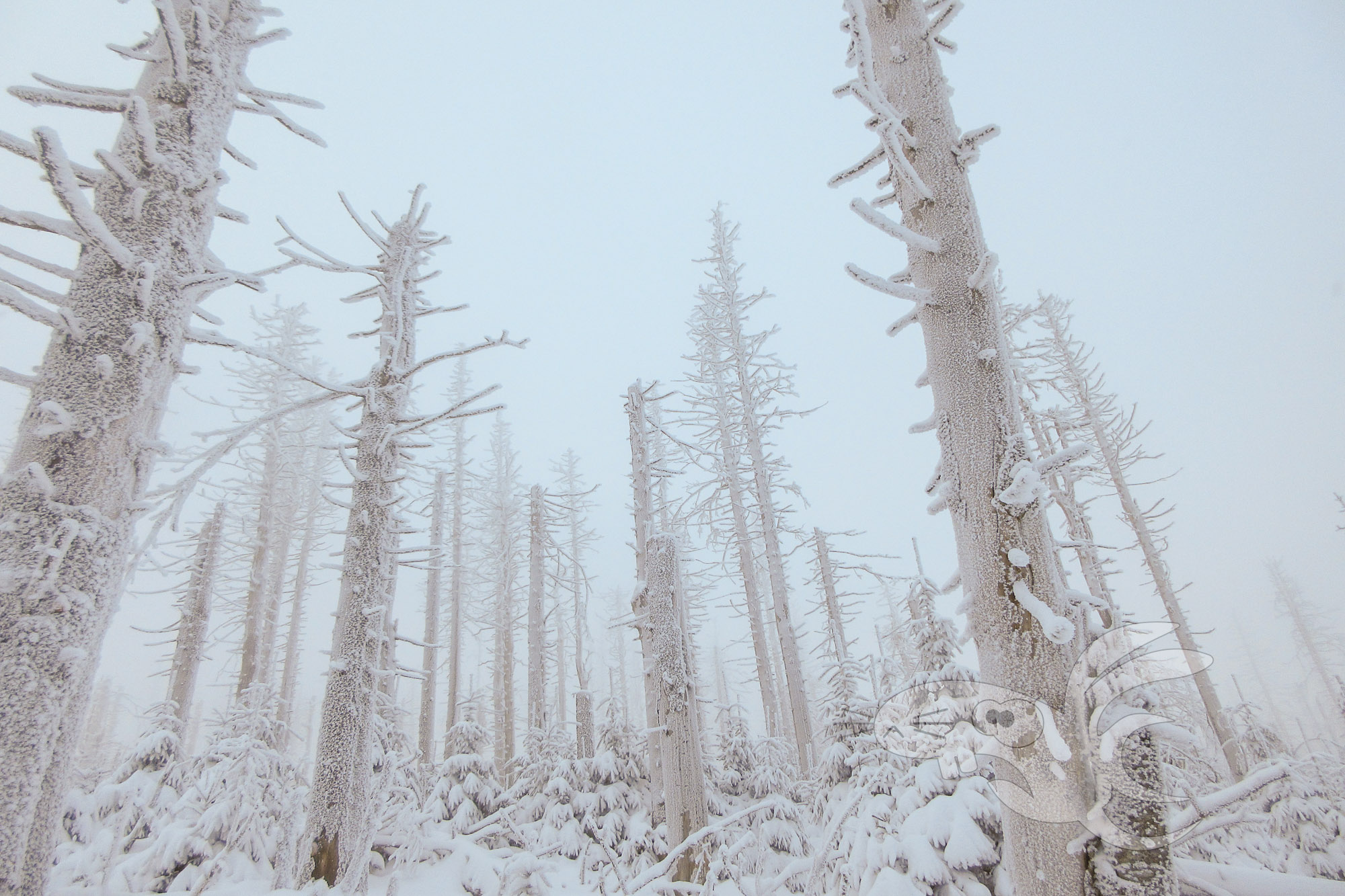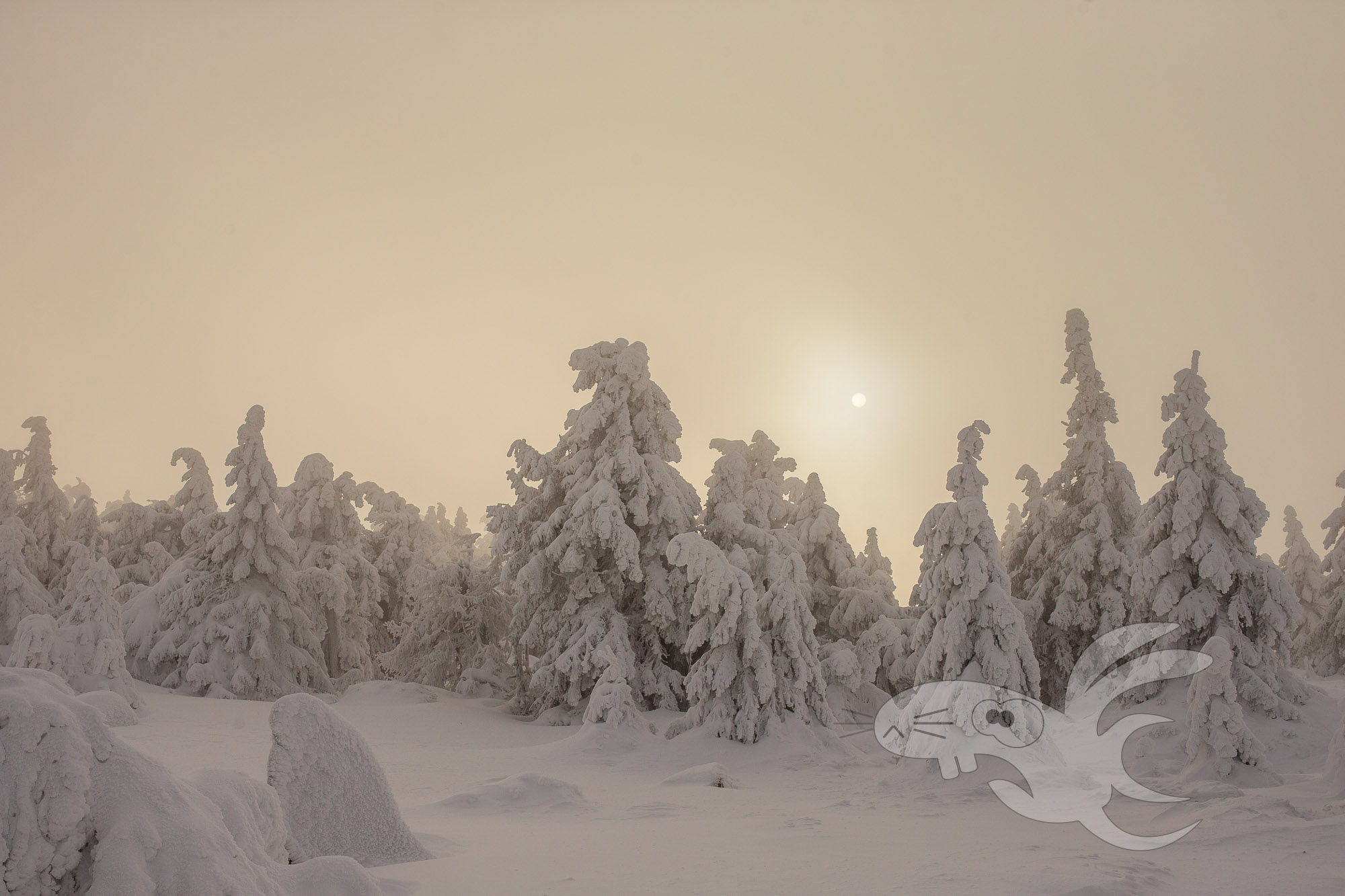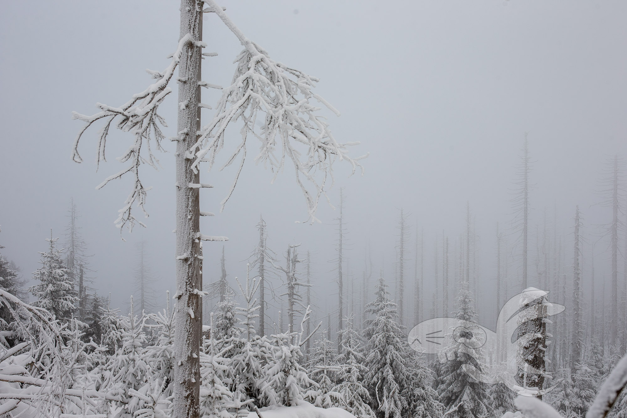 Die schöne Aussicht ins Harzvorland ist nun dahin. Entschädigt werden wir mit einer spektakulären Winterlandschaft.