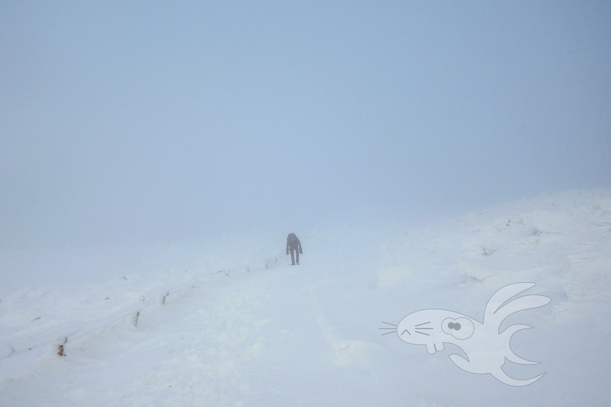 Wenige Menschen tauchen gelegentlich aus dem kalten Weiß auf und verschwinden wieder.